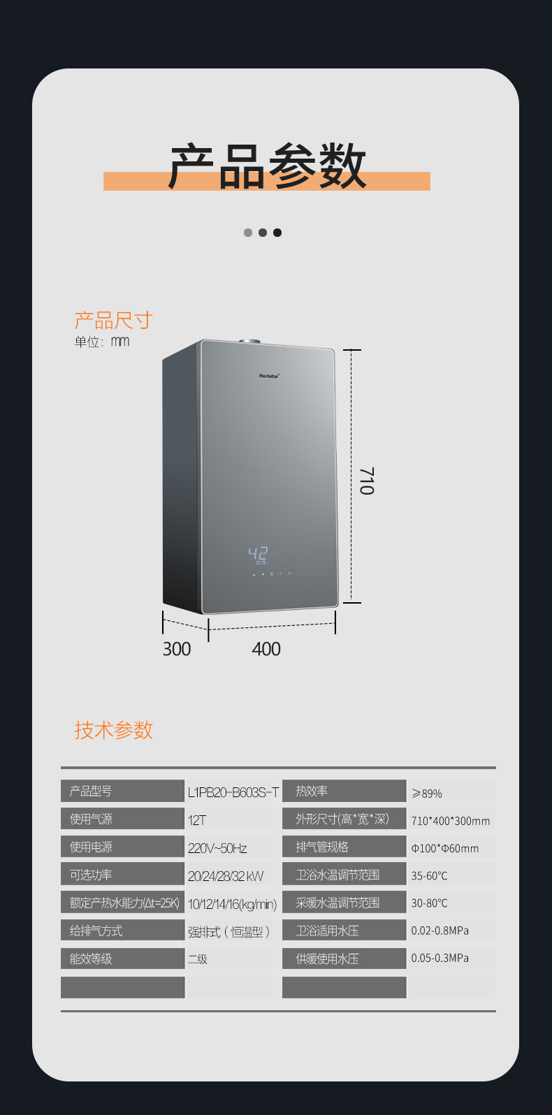 采暖額定熱輸出:17.8kw/21.4kw/25.0kw/28.5kw