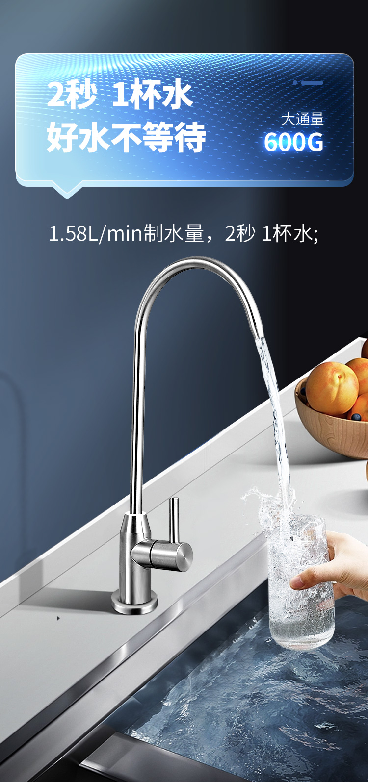 額定凈水流量:1.58L/min
