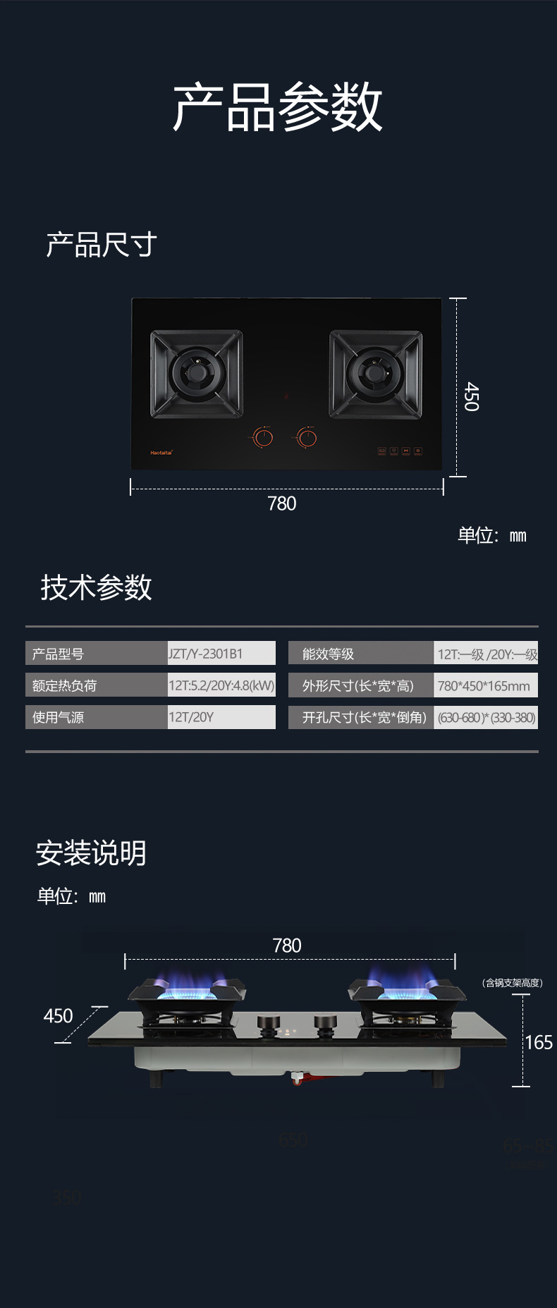 外形尺寸(長*深*高mm):780*450*165