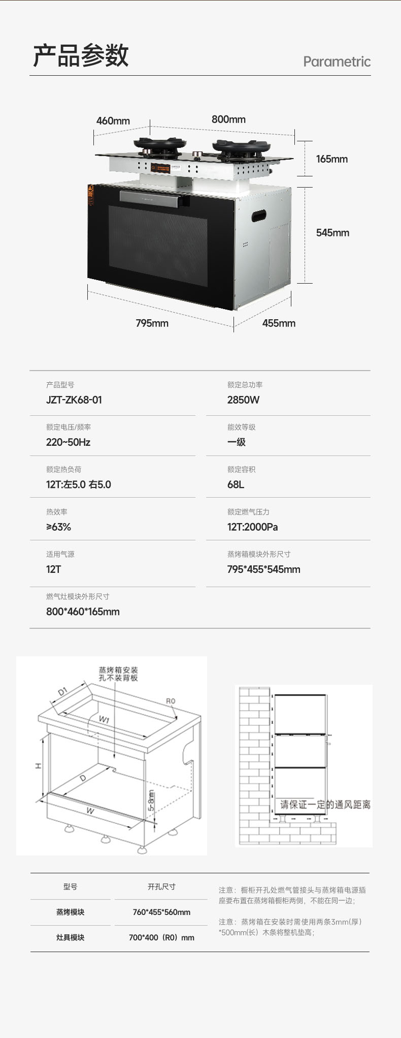 蒸烤箱容量(L):68L
