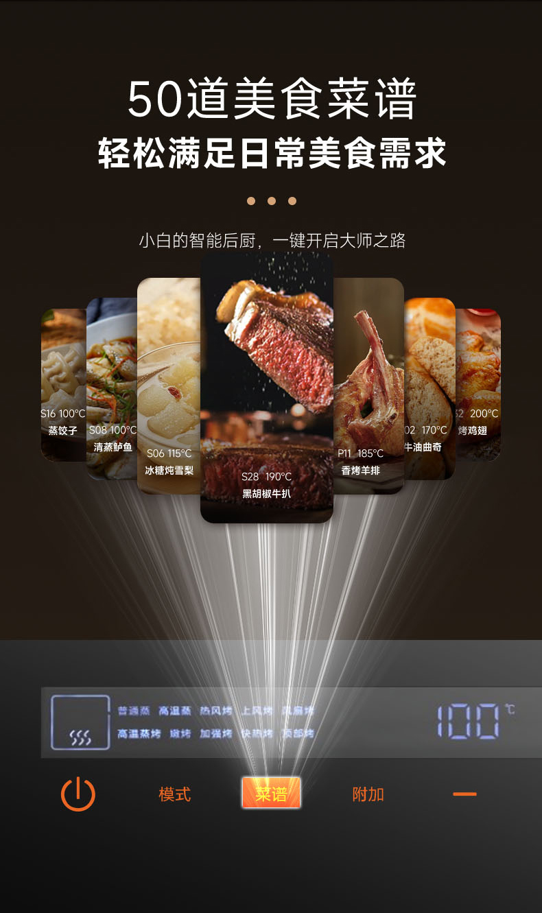 蒸烤箱額定總功率(W):2850W