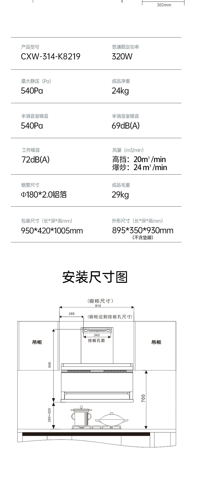 最大靜壓(Pa):540Pa