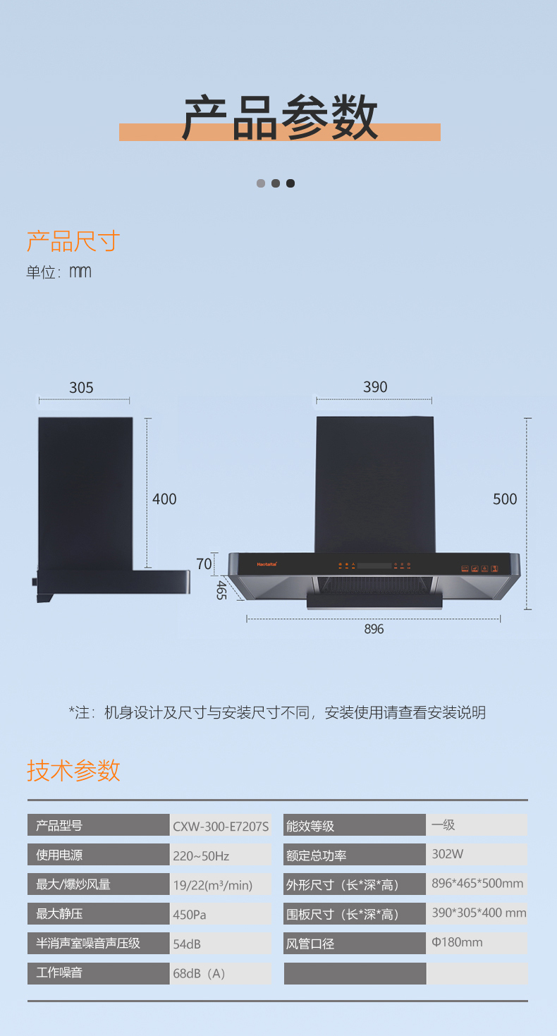 外形尺寸(mm)(長*深*高):896*465*500